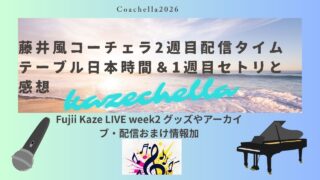 藤井風コーチェラ(Coachella2026)week2週目配信タイムテーブル日本時間&1週目セトリと感想 グッズやアーカイブ・配信おまけ情報
